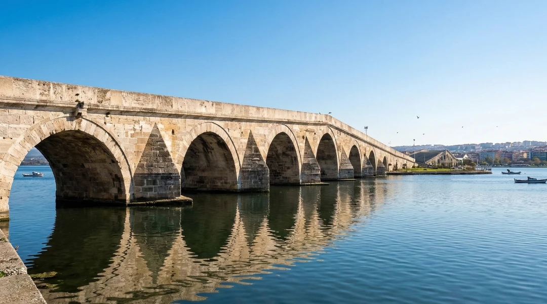 از نظر تاریخی، این منطقه همواره یک کریدور ترانزیتی حیاتی بین آناتولی و اروپا بوده است. قدمت این منطقه به کلونی یونانی «آتیرا» (Athyra) بازمیگردد و در سال 443 میلادی حتی مورد حمله آتیلا (پادشاه هونها) قرار گرفت. اما نقطه عطف معماری منطقه در قرن شانزدهم و به دست معمار افسانهای عثمانی، معمار سینان رقم خورد. او پل سنگی باشکوه 636 متری قانونی سلطان سلیمان را بر روی دهانه دریاچه بنا کرد که امروزه به عنوان نماد تاریخی این منطقه شناخته میشود و تضاد زیبایی با معماریهای مدرنی چون مسجد آوانگارد سانجاکلار ایجاد کرده است.